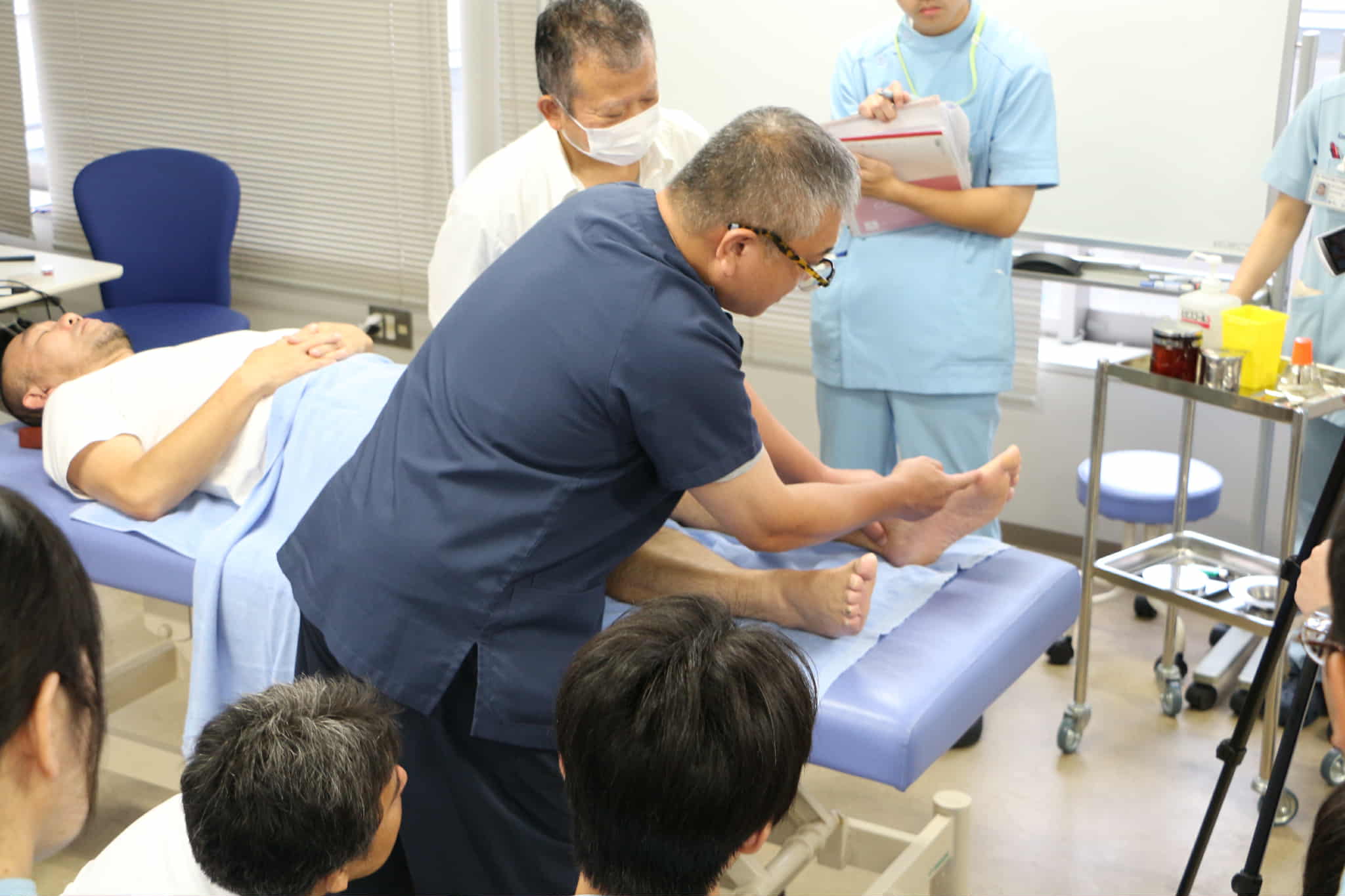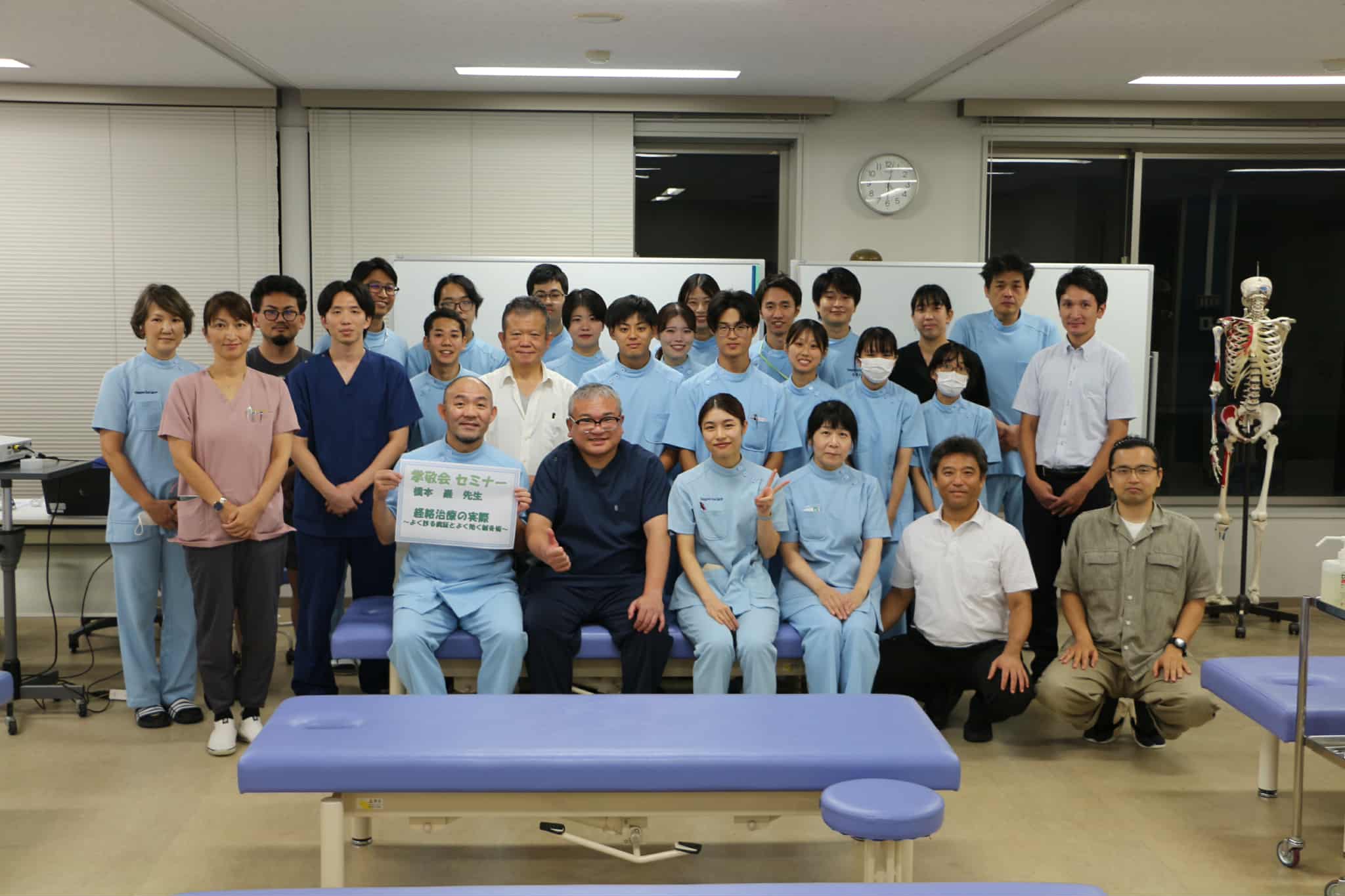 思いのほか、学生さんが多い。ちょうど腰痛の方がいたので、実際にみてもらう方が早い。早々に実技に切り替えました。被験者の方、殿部痛が解消したと喜んでくれました。