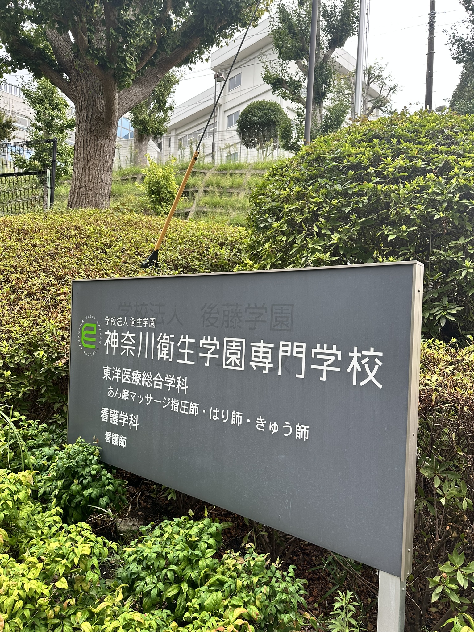 しかし、所沢からアクセスは良好です。西武池袋線に横浜に直通する便があるので、横浜で京急に乗り換えて横須賀中央駅へ。学校近くまでバス。看板の上に校舎。最後に坂をのぼって到着です。