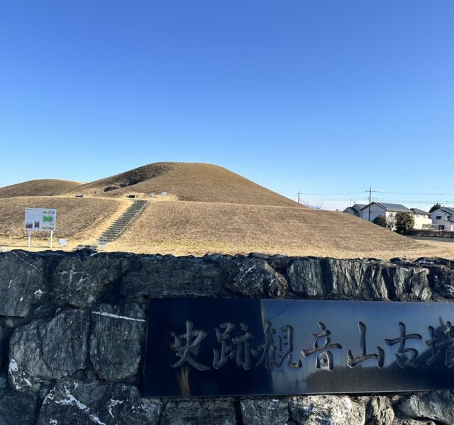 これに先立ち、恒例の地元学習です。観音山古墳に立ち寄りました。1968(昭和43)年に発掘調査が行われ、全く手つかずの副葬品や埴輪が発見されました。そのすべてが国宝指定という奇跡の古墳です。以前から行ってみたいと思っていた史跡です。とても感激しました。